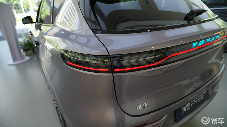岚图FREE+的D柱不再使用类似贯穿式的设计,后扰流板也变得更加平整,下方后包围的造型也进行了调整使用了与车身同色的设计,和它圆润的车头更搭配。