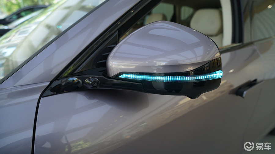 值得一提的是,车身侧面应用隐藏式门把手在这个级别车型中很常见,但全系标配电吸门的就不多见了。开门的时候,门把手还有灯光显示,可以为后方来车或者行人带来提示。