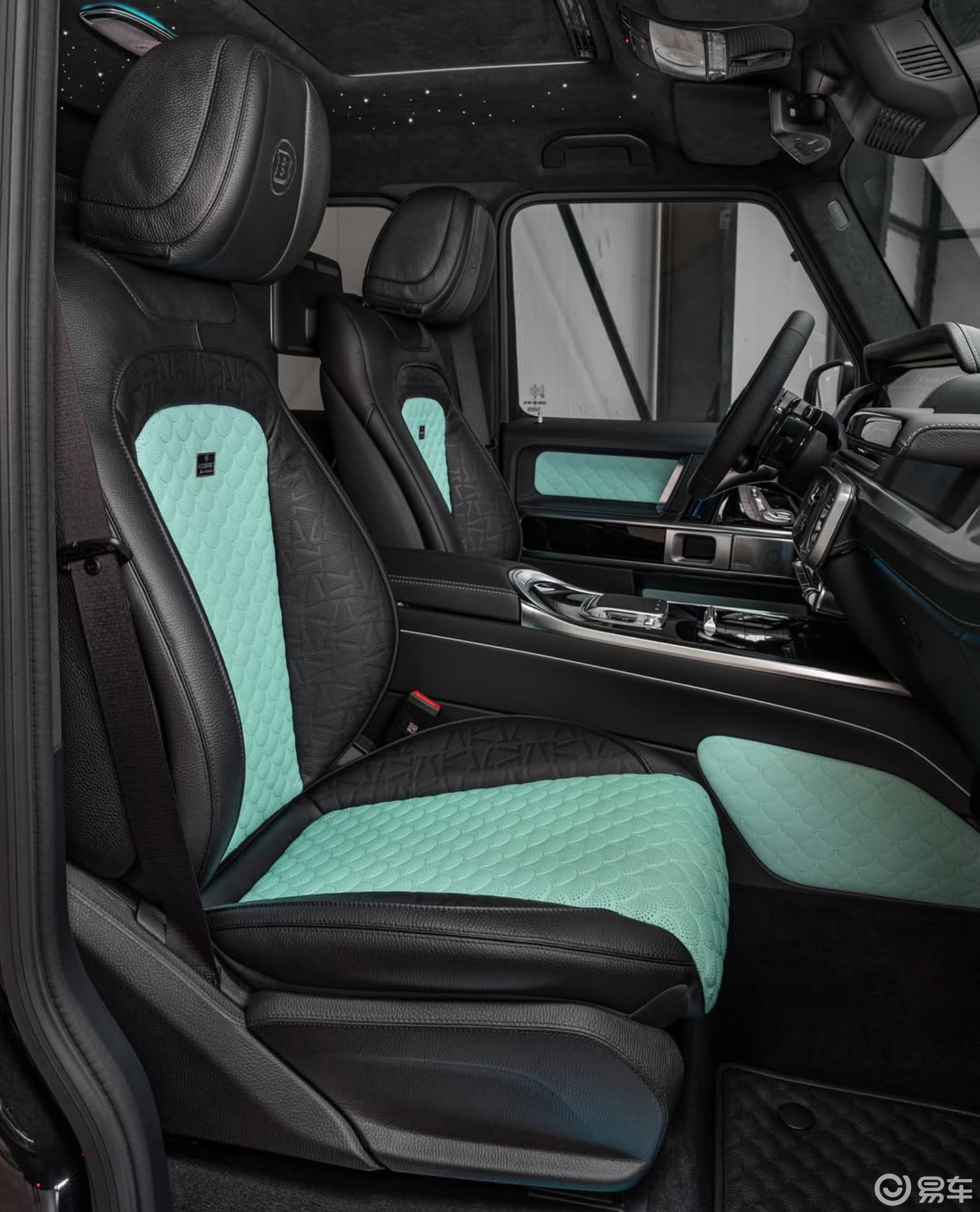 除了座椅和顶棚,内饰的其他细节也都经过了精心改装。中控台和门板等区域,在保留奔驰经典设计元素的基础上,增加了更多的软性材质包覆和精致的缝线工艺,触感更加细腻,品质感直线上升。同时,车内还融入了一些带有荧光绿元素的装饰条,与座椅的颜色相呼应,使整个内饰风格更加统一且富有个性。