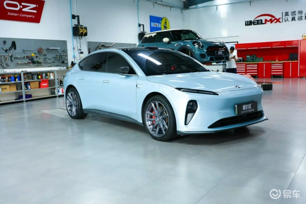 轮毂改装,数据是关键。ET值(偏距)的选择直接决定了轮毂与车身侧面的相对位置,是姿态呈现的核心要素。经过精心测算,我选择了ET25的数据,专为蔚来ET5T原厂轮拱空间设计。安装效果令人满意:轮毂外沿与宽体轮眉边缘几乎达到了完美的齐平状态(Flush Fit)。这种饱满且不显突兀的视觉效果,进一步衬托了ET5T流畅优雅的旅行车线条,使其显得更加低趴稳健,跑车风格尽显,同时完全避免了剐蹭轮眉的风险。