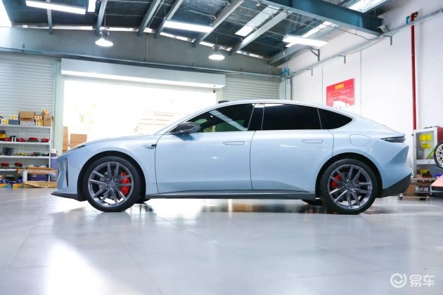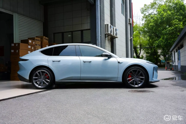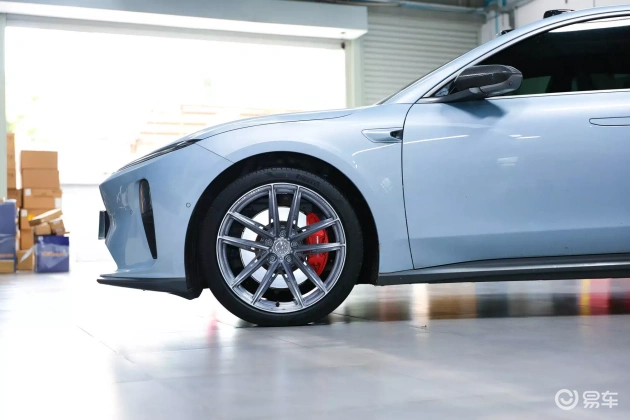 在色彩哲学上,拉丝枪灰色与同温层蓝车漆形成绝妙搭配。它既非高调炫目的亮银,亦非过于沉闷的深黑。拉丝工艺赋予了其细腻的金属质感和纵向纹理,在光线下展现出低调而高级的光泽。枪灰色的冷峻深邃与ET5T的优雅科技感同温层蓝相得益彰,形成和谐且富有层次的对比。这不仅强化了车辆的运动氛围,还保持了整车格调的统一与内敛的锋芒。行驶于都市楼宇间,ET5T自成一道深邃而充满力量的风景线。
