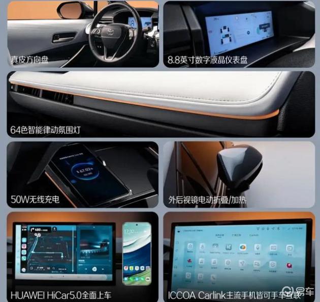 内饰方面,采用了全新的设计,更为时尚的黑白配色,空调出风口贯穿式样式,并引入64色律动氛围灯,升级搭载全新的8.8英寸数字液晶仪表盘,12.9英寸中控屏,拥有8155P车规级芯片。手机互联方面,新车配备HUAWEI HiCar 5.0、Carlink。中控台下方还有50W无线充电。新车座椅升级全新的一体式设计,高靠背云感亲肤座椅。新车还全系标配TSS 3.0智能驾驶辅助。