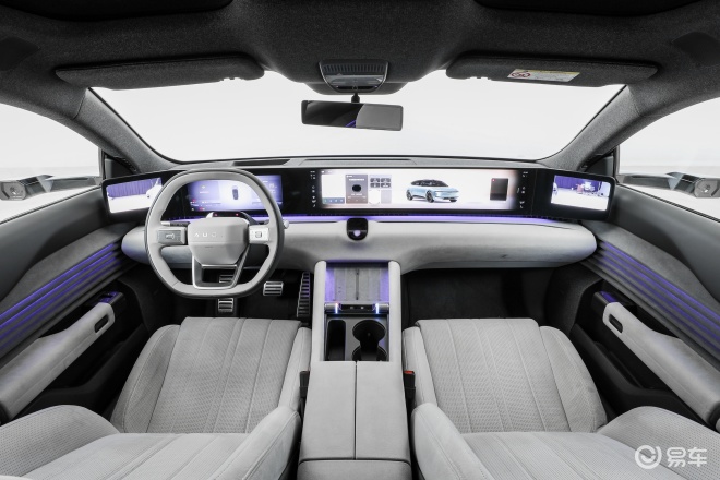 内饰方面,新车采用了时下流行的简约设计风格,中控台上无物理按键,一体式贯穿大屏集成了日常操作的所有功能。官方表示,新车配备由AI驱动的虚拟助手,可通过触控或语音控制,并通过人机交互实现情感表达。该虚拟形象具有个性化记忆、行为选择等多种定制化功能。前排中央通道区域下部采用了镂空设计,大幅提升了内饰空间利用率。