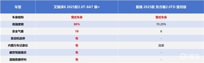 星瑞同样采用了笼式车身结构,整车高强度钢占比70.2%,提供了可靠的基础安全保障。在气囊数量、疲劳驾驶提示、道路救援呼叫等细节配置上,两者各有侧重。虽然都是同级安全性能优秀的国产家轿,但艾瑞泽8在被动安全的“硬核”程度和智能主动防护的贴心周全上,确实更能给追求极致安心的年轻人吃下定心丸。