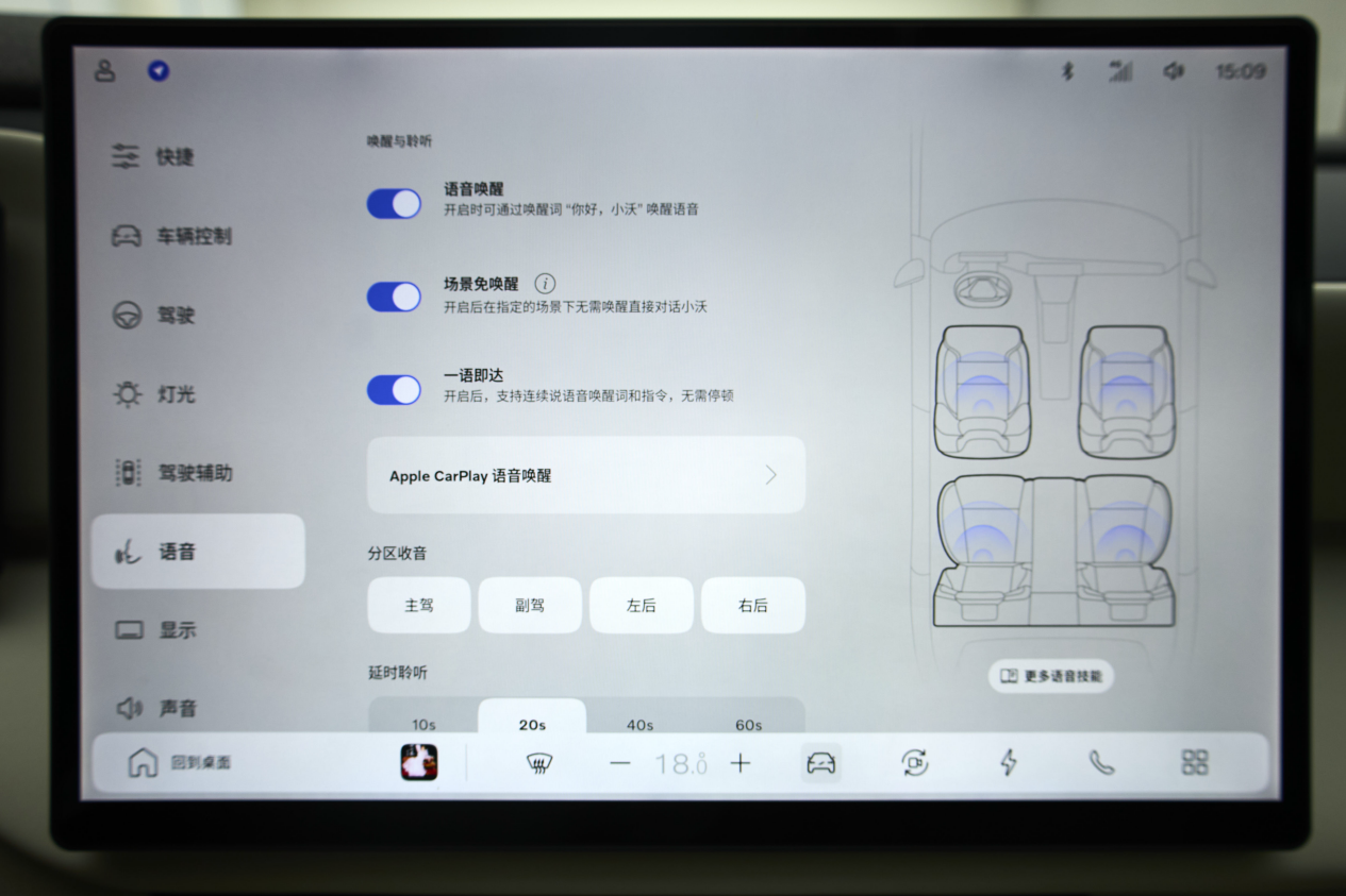而且,这一套新的车机系统加入了融合 AI 大模型的语音助手,所以我们也能像其他新势力车型一样,通过语音助手快速找到想要的设置项,或者直接更改车辆设置。