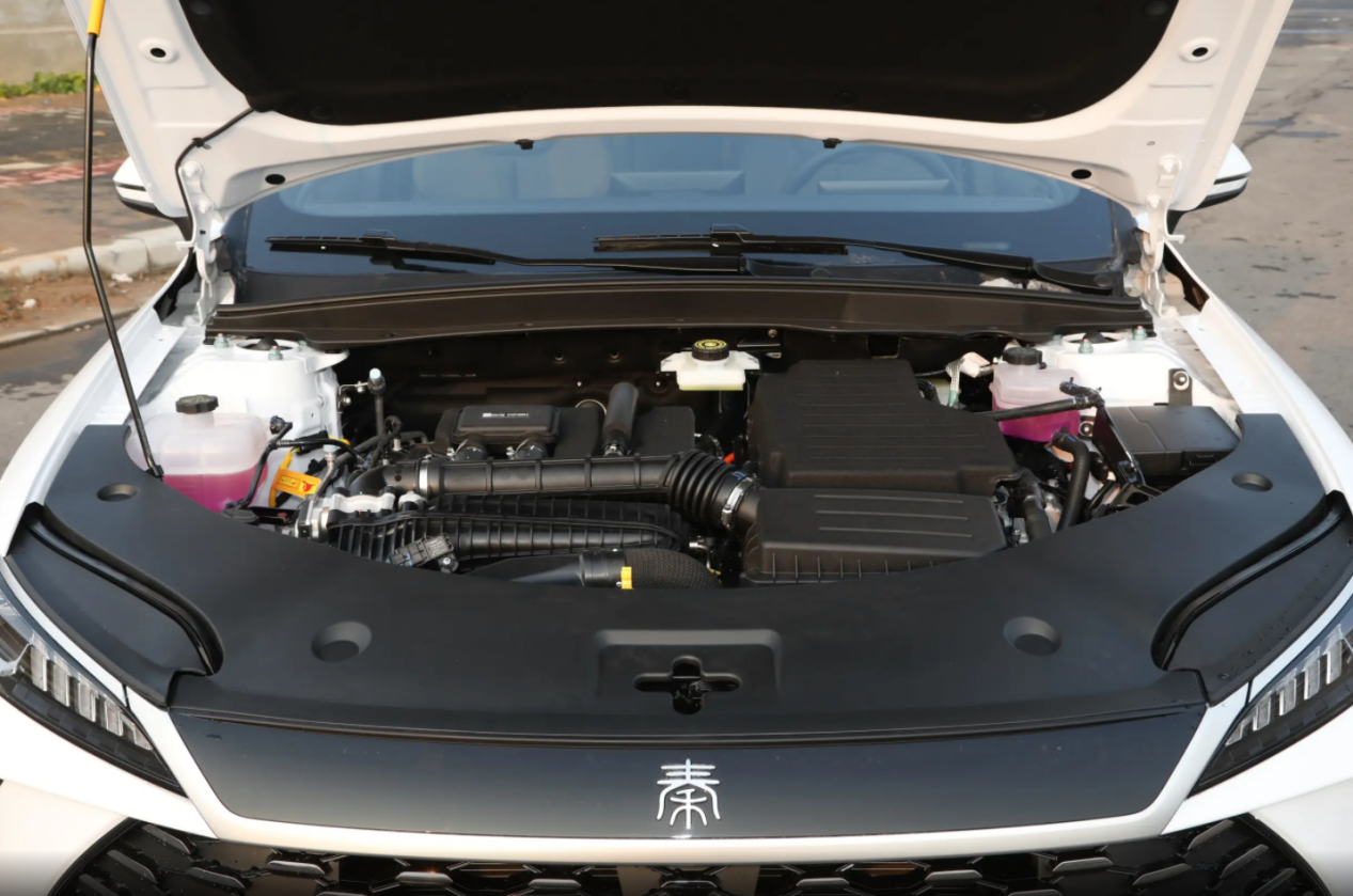 首先来看动力系统,比亚迪新款秦PLUS DM-i标配101Ps马力的1.5L自吸发动机,同时还有120kW功率的驱动电机,与老款秦PLUS DM-i保持一致。但从续航表现上来看,新款秦PLUS DM-i的入门版就标配了15.87kWh的电池组,拥有128km的纯电续航。而除此之外,还支持最大15kW的快充体验,从30%充到80%大概需要30分钟。