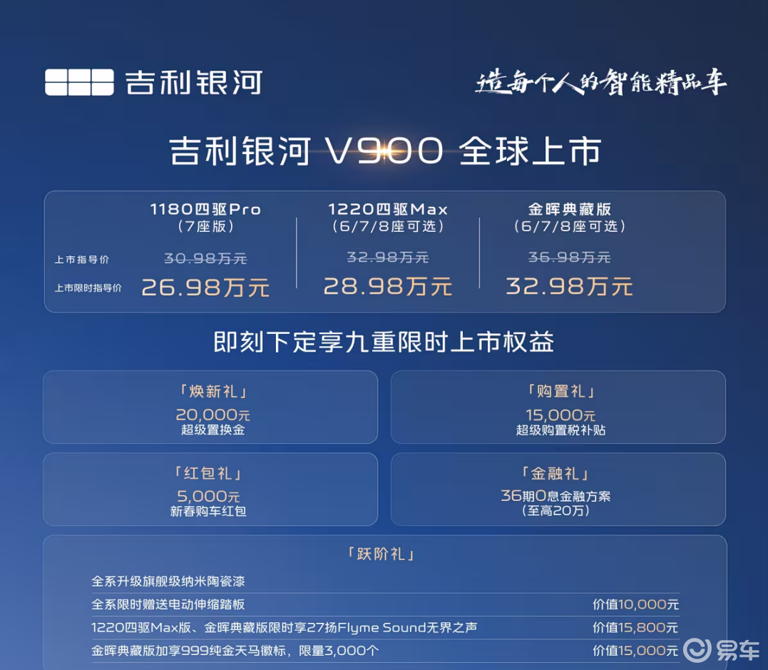 从极氪009到翼真L380,再到极氪MIX,吉利近两年在MPV车型上的发力确实给我们带来了一定的惊喜,而随着1月20号吉利旗下全新车型银河V900的上市,也算是给2026年的MPV大战开了一个好头。