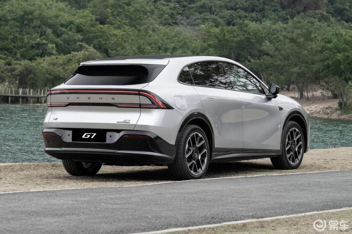 不过,除了前脸的部分改造,增程版的其余设计基本都是照搬纯电版。整车从侧后方看依旧会产生一些跨界效果,车顶向后俯冲的倾向还是比较明显的,而大角度倾斜的后风挡会让人联想到一些两厢掀背车。当然,烤漆材料的底盘包围、辨识度极高的光环式尾灯,这些依旧是小鹏G7身上的加分项,也是它可以吸引到年轻群体的重要环节。