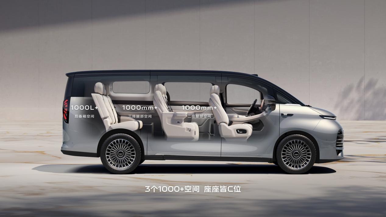 当然,作为一款作为家庭 MPV ,其最大的核心竞争力还是在于空间表现方面,在此方面,银河 V900 的空间表现堪称「空间魔术师」。其拥有91.8% 的全球最高得房率,搭配 3.97 米车内有效长度,让每一寸空间都得到充分利用。不仅如此,新车还拥有行业首创的三个 1000 + 空间,彻底解决了 MPV「第三排是妥协空间」 的痛点,其中,二排纵向空间超 1000mm,三排纵向空间同样超 1000mm,即使身高两米的乘客也能在第三排惬意舒展;而后备箱空间同样达到了1100L ,可容纳 15 个 20 寸行李箱,再加上 163L 下沉储物空间,全家出行的行李、露营装备或家宴食材都能轻松收纳。