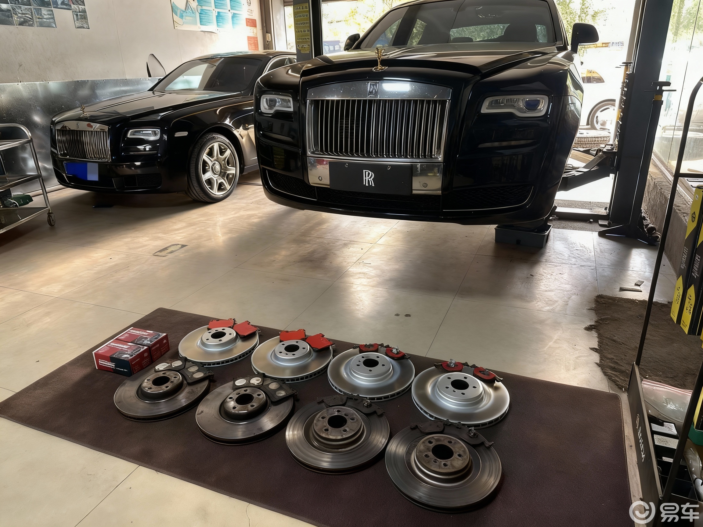 Ghost古思特延续了劳斯莱斯经典的沉稳大气风格。车头的帕特农神庙中网搭配标志性的 “欢庆女神” 车标,简洁醒目的前大灯配备劳斯莱斯专属双 R 标识,极具辨识度。古思特不仅是一种出行工具,更是对其成功的一种象征,对高品质生活和豪华体验的追求。豪华与庄重能彰显其身份和地位,无论是商务洽谈还是日常出行,都能体现出驾驶者的实力和品味。搭载 6.6L 双涡轮增压 V12 发动机,最大马力 571Ps,最大功率 420kW,最大扭矩 780Nm,最大扭矩转速为 1500rpm。匹配 8 速 ZF 自动变速箱,动力传输平顺且高效。百公里加速时间为 4.9 秒。全系搭载高性能制动硬件与完备的制动辅助系统,以此匹配自身超大车身和强劲动力,前后通风盘式制动器,前轮制动盘直径达395mm,后轮制动盘直径为402mm,大尺寸制动盘能保证制动时的散热性与制动力基础,保障刹车的稳定性与安全性。日常保养案例劳斯莱斯Ghost古思特更换WESPARKE刹车盘,不过受自身较大自重影响,这款车刹车系统反馈很出色,紧急情况下能快速稳定停车,给驾驶者充足安全感