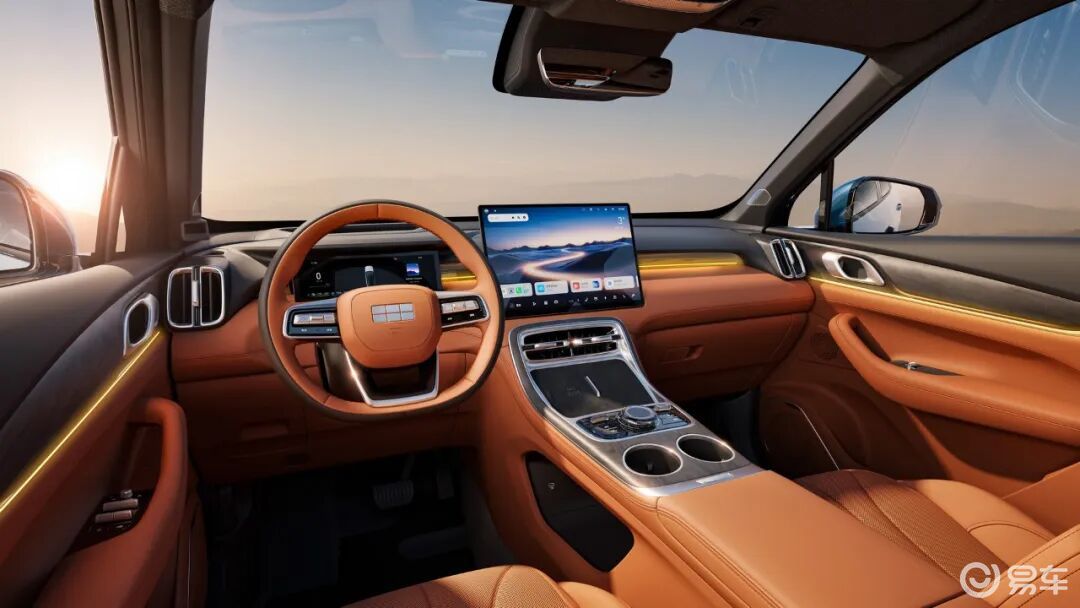 从目前曝光的官图来看,银河M7的内饰设计除了彩电、大沙发之外,在细节方面也非常注重。目测中高配车型会搭载15.6英寸高清中控大屏,且车机系统预计肯定会采用Flyme Auto系统,支持车手互联等,双拼色内饰的视觉效果相当不错。