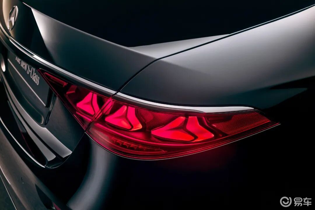 前大灯和尾灯都是全新设计,尾灯明显借鉴了E级的设计,每个尾灯中有三颗星;而全新设计的前大灯则与尾灯呼应,采用了双星造型。同时,依托MB.OS架构,前大灯的功能更加丰富,不仅有长达600米的照射距离,具备弯道照明和局部远光功能,还新增低温预警投影功能,可在路面投射雪花标识,为驾驶者提供警示。