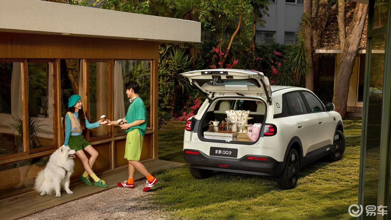 全新QQ3定位年轻用户生活主力车,官方提出“高颜值、大格局、强体魄、更懂你”四大核心价值。外观由红点设计团队操刀,采用方圆美学与超曲面设计,提供6种车色及36色DIY车顶选装。车身尺寸方面,轴距2700mm,得房率85%,后备箱容积375L-1450L,并配备70L电动前备箱。底盘采用后置后驱、四轮独立悬架及50:50轴荷比,麋鹿测试成绩77km/h,最小转弯半径5.2米。420km版本支持16.5分钟极速快充(30%-80%)及6.6kW外放电。