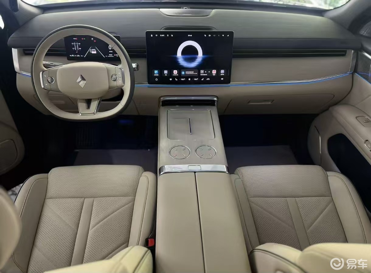 内饰方面,华境S采用电子怀挡,多功能方向盘有加热功能,配备8.8英寸液晶仪表和15.6英寸2K中控屏,全系标配华为鸿蒙座舱,车机支持语音四区域唤醒识别、面部识别等,而副仪表台拥有50瓦手机无线充电、双杯托、对开式扶手箱,此外还提供15喇叭Infinity燕飞利仕品牌音响、多色氛围灯、负离子发生器、香氛装置以及车载冰箱等。