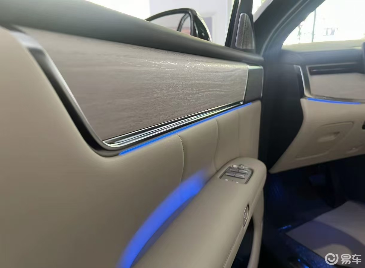 华境S整车长宽高分别达到了5235*1999*1800毫米,轴距为3105毫米,已经称得上是个大块头了,车身轮廓舒展大气,采用传统样式门把手,前排和后排均是多层隔音玻璃,实拍车型配备的是21英寸大轮毂,车顶末端设有扰流板和高位刹车灯,贯穿式尾灯点亮后同样呈现出闪电️状样式,与车头灯组做到了很好的呼应。