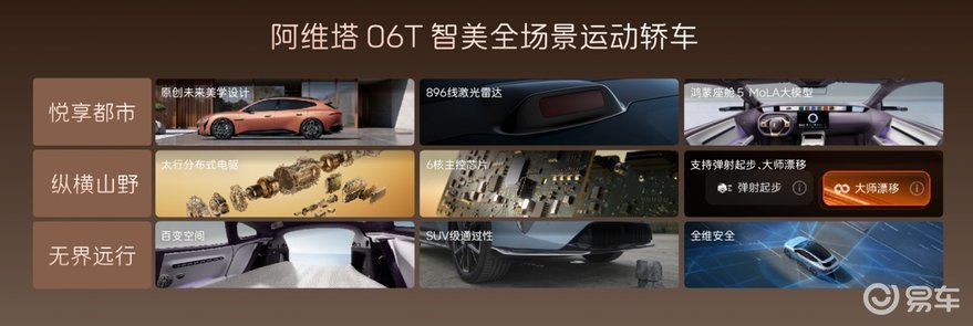 同步开启预售的阿维塔06T,则主打全场景体验、运动驾控与高价值,推出了Elite、Max、Performance三大版本,将于4月22日正式上市。新车入门款即标配双电机后驱,为用户带来更加卓越的驾驶体验。0-100km/h疾驰仅3.74秒,这款后驱纯电轿跑稳坐市场加速王座。其Performance版更搭载三电机全时四驱系统,零百加速飙至2.78秒,为年轻群体解锁极致性能体验——华为乾崑智驾系统加持下,全场景智慧出行触手可及,堪称都市先锋的移动美学空间。预售期间推出限时礼遇:2000元意向金可抵5000元购车款,前5000名车主更获赠宁德时代联名定制充电宝,以越级配置重塑25万级性能轿跑价值标杆。