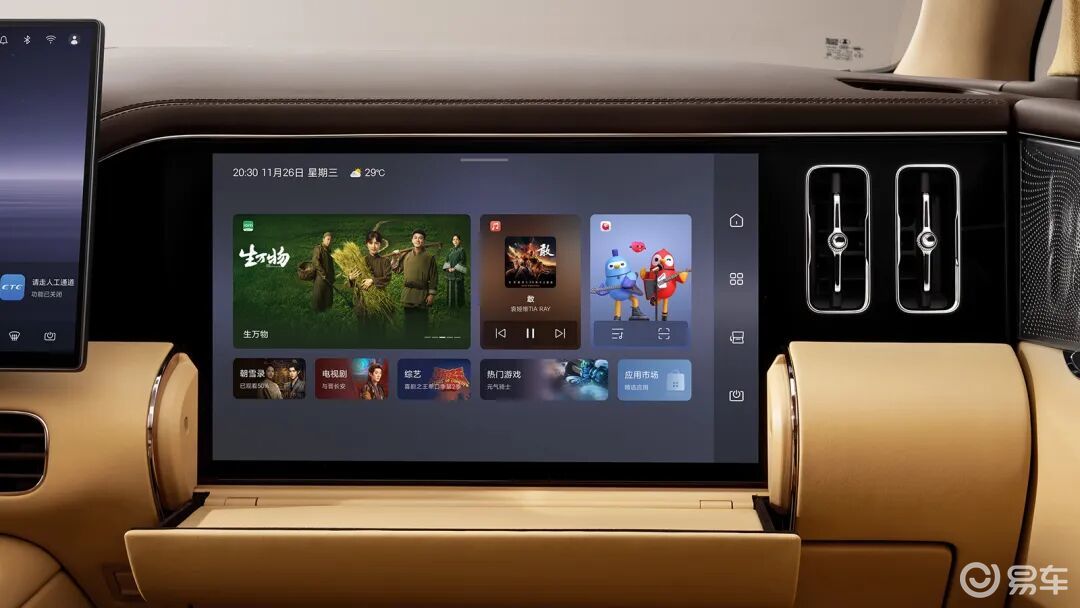 全球首创副驾开合智能屏,精准适配多元出行场景,可收可放,大小随心。听歌时,用精致小屏;沉浸式观影,一键翻转,秒变专属大屏;折叠台面还可充当置物区。全车11屏智能互联,影音娱乐资源一键共享。魔方传声筒、AR 投影感应侧滑门与尾门、蓝牙无感钥匙等实用配置,提升日常使用仪式感。此外,创新磁吸生态拓展系统,可自由搭配拓展屏、护眼灯、化妆镜等配件,适配商务办公、亲子出行、短途旅居等多元场景,让第二代腾势D9升级为可无限拓展的移动生活空间。